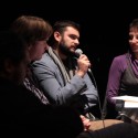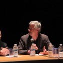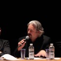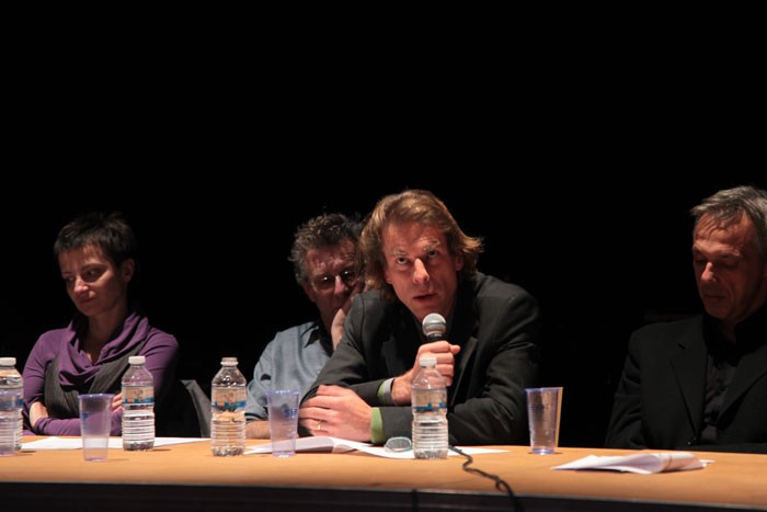 La rencontre s'est faite essentiellement en anglais sur la scène des Arbalestriers. Un micro volant a circulé dans la salle pour répondre aux questions du public.