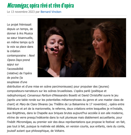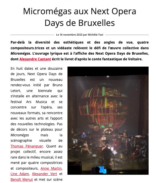 La presse parle de Micromégas - Un opéra contemporain très remarqué !