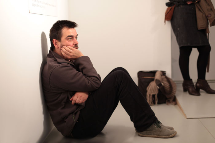 Ecouter/Voir : Hughes Kolp - concert déambulatoire au BAM - Exposition "Le modèle a bougé" © Luc Van de Velde